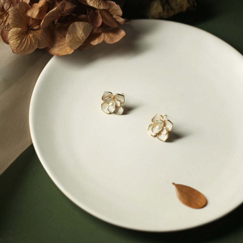 Color: Flower Pearl Earrings - Gold